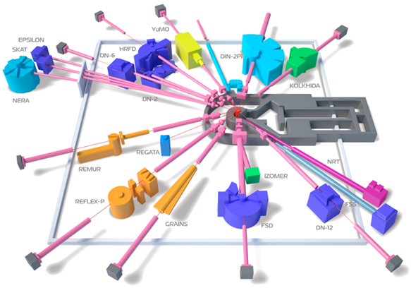 IBR-2 is a fast pulsed reactor with mechanical modulation of reactivity enforced by a movable reflector. This unique machine has a mean power of 2 MW. In burst, its power is thousand times higher as it generates a thermal neutron flux of 1016 n/cm2/s from the moderator surface. A set of 13 high-performance instruments, that are constantly being upgraded, are avaliable for your experiments at the FLNP site, other two completely new instruments being presently under construction. A team of qualified and dedicated staff comprises scientists, engineers and technicians is ready to assist you throughout the experiments at each instrument.